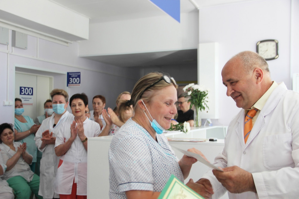 Главврач отметил, что и сейчас, когда филиал Центра пришлось перепрофилировать под ковидное отделение, весь коллектив выразил готовность там работать.